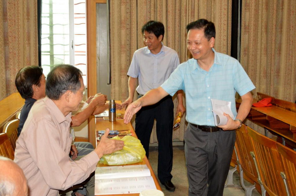 校长陈兴炎、副校长吴国荣与离退休老干部亲切交谈