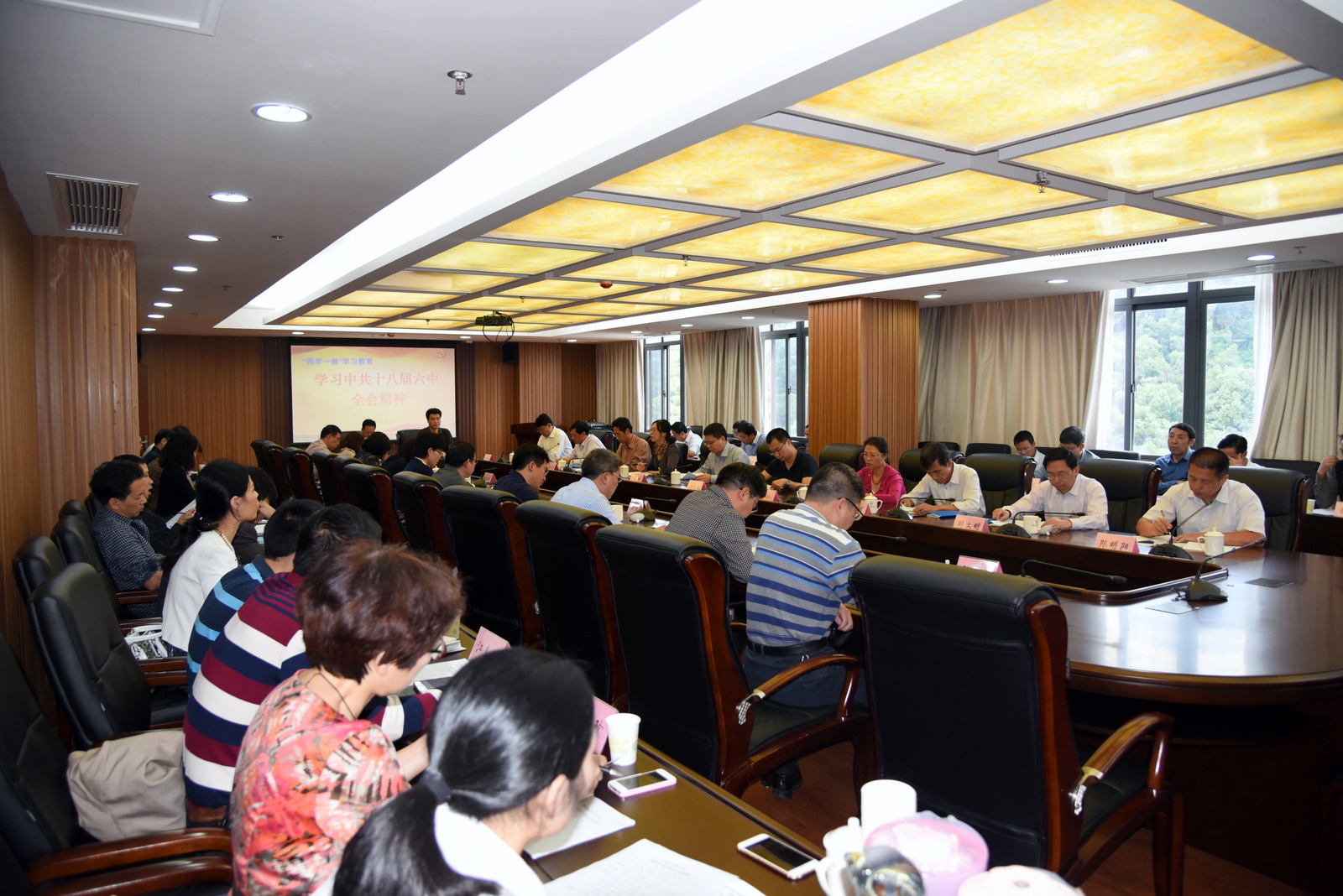 11月1日下午,学校召开今年第十次党委中心组学习(扩大)会议,结合“两学一做”学习中共十八届六中全会精神,党委书记马国防主持会议,校领导陈兴炎、陈展虹、沈光辉、王幼新出席会议,全校副处级以上干部参加会议。