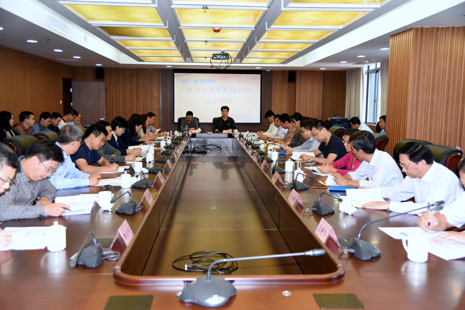 二要把学习宣传贯彻六中全会精神作为当前和今后一个时期的重要政治任务来抓。首先,要认真组织学习。要认真学习习近平总书记在十八届六中全会上的重要讲话,学习六中全会审议通过的《关于新形势下党内政治生活的若干准则》和《中国共产党党内监督条例》。其次,要分层次地组织学习。既要认真抓好全校党员干部的学习,更要重点抓好处级以上领导干部的学习。其三,要深刻领会全面从严治党的精神。全面从严治党是六中全会最突出最鲜明的主题,要用全面从严治党来解决党内存在的突出矛盾和问题,有效地应对党面临的四大考验,克服四种危险,不断增强党自我净化、自我完善、自我革新、自我提高的能力。