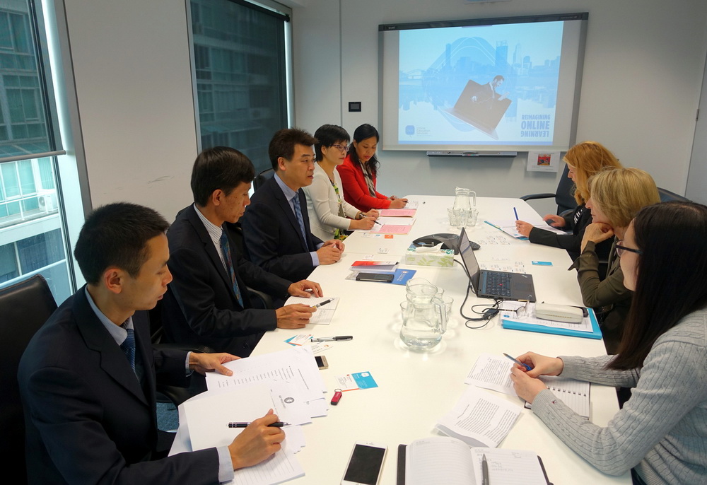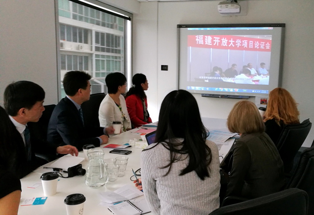 在澳大利亚斯威本大学访问期间,马国防书记会见了该校远程在线教育中心执行总监Kay Lipson女士及相关部门负责人,双方在友好的氛围中进行了商洽。马国防书记结合学校宣传视频,介绍了福建电大办学的基本情况以及在推进转型升级、建设开放大学方面所做的努力,并表达了加强交流合作的意愿。Kay女士以PPT形式向马国防一行介绍了斯威本大学开展远程教育的办学情况,并着重介绍了课程体系建设、学习平台设计与管理、学生支持服务及学历提升途径等情况。双方就课程建设、资源共享、培训开发及学历提升等具体合作事项进行了深入交流,并达成了共识,约定回国后就一些合作项目通过一定的程序签订具体合作协议。
