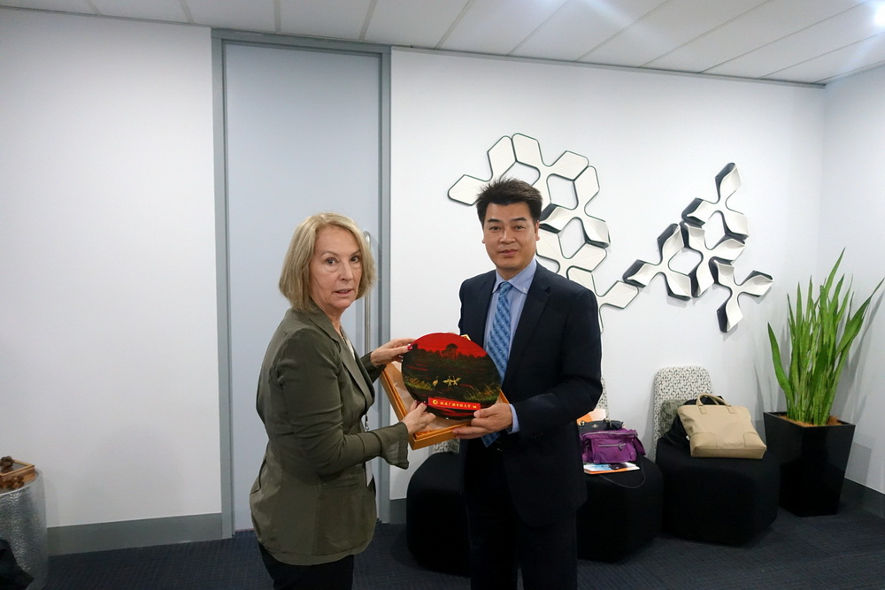 向威斯本大学远程教育中心执行总监Kay女士赠送纪念品