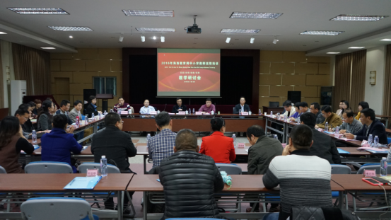 1月6日上午,为总结2016年度工作成绩,征求改进远程培训工作的意见与建议,探讨2017年的工作思路与发展方向,培训学院在左海校区六楼多功能厅召开海西教育网2016年中小学教师远程培训研讨会。副校长沈光辉、北京继教网技术有限公司董事长刘玉明、培训学院相关人员及各地教师进修学校代表、指导老师代表及海西教育网全体工作人员共计53人参加会议。