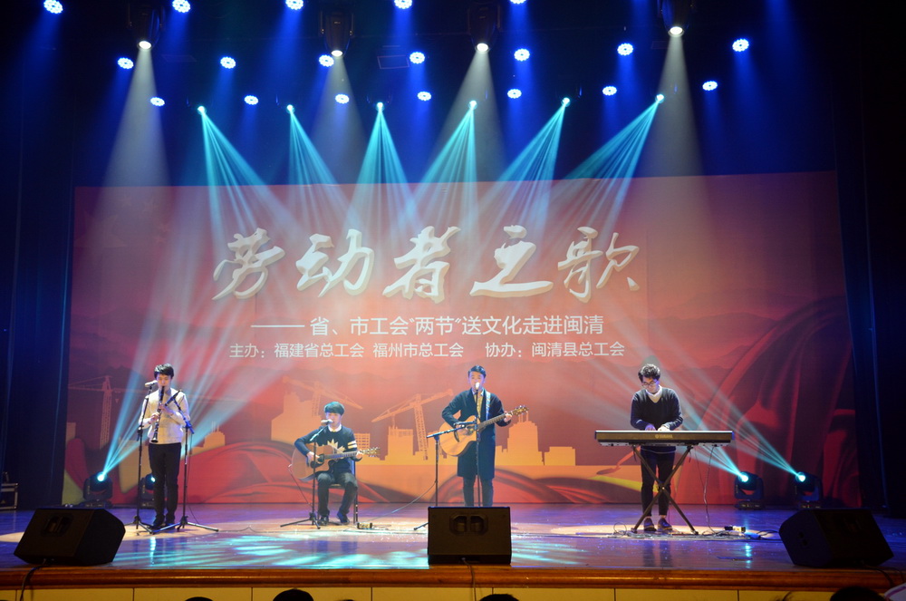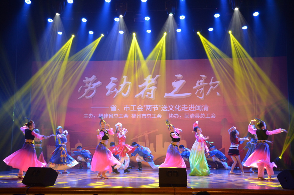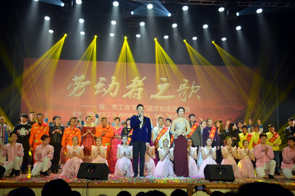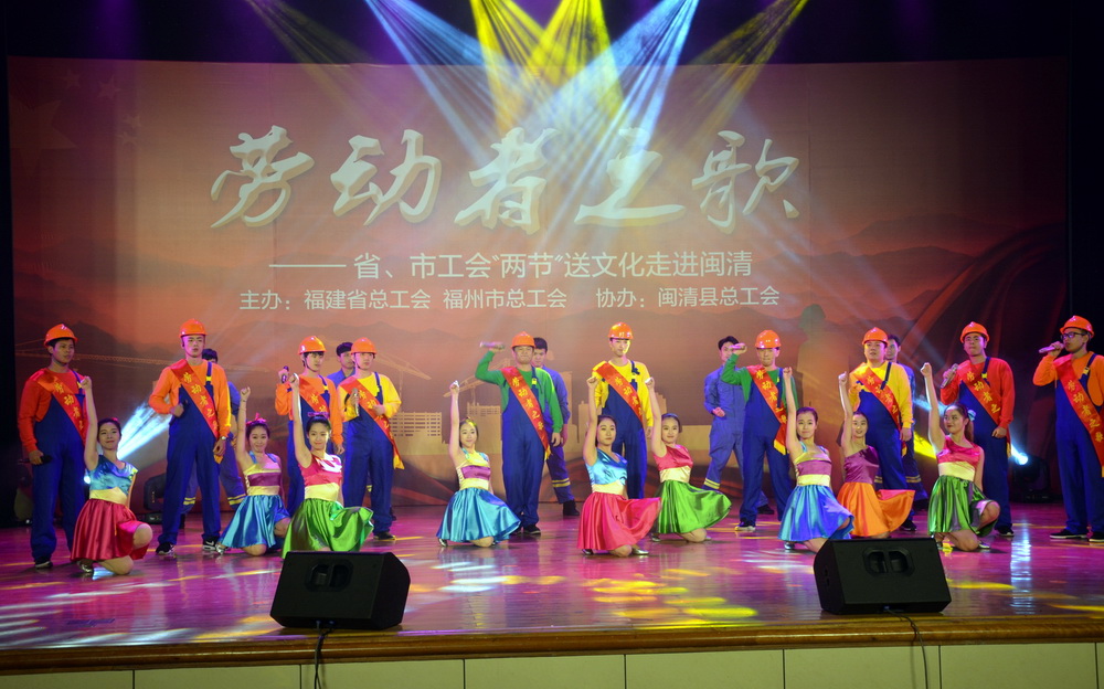 1月12日晚,福建工会“劳动者之歌”文化慰问演出暨福建省农民工“求学圆梦行动”计划启动仪式在闽清县会堂拉开帷幕。闽清县各级劳模、职工近千人到场观看。省委委员、省总工会党组书记丁文清,福州市委常委、统战部长、市总工会主席陈晔,省教育工委副书记刘剑津,校党委书记马国防、校长陈兴炎、副校长陈展虹出席活动。