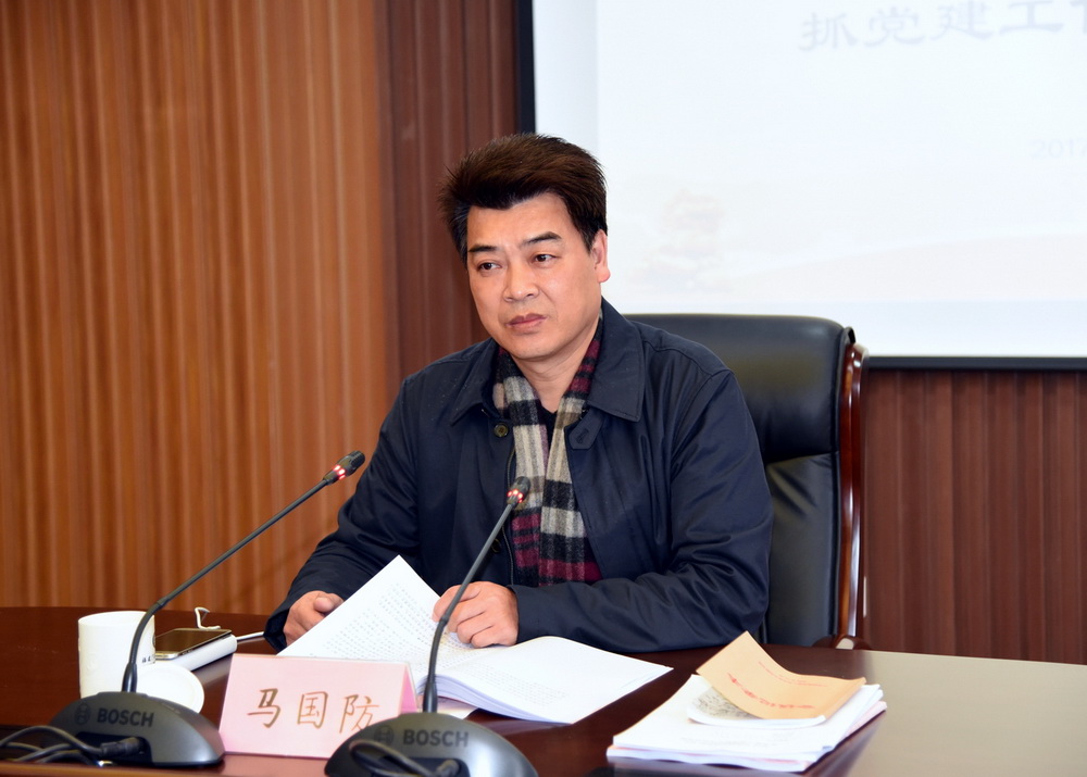 为做好2017年党建工作,马国防提出了四点要求:一是从讲政治的高度深化对全面从严治党的认识。深化全面从严治党,首先必须注重政治上的要求,旗帜鲜明地讲政治,善于从政治上把大局、看问题,善于从政治上谋划、部署、推动工作,始终严明政治纪律和政治规矩,做政治上的明白人。要深入学习贯彻习近平总书记系列重要讲话和党的十八届六中全会、全国高校思想政治工作会议精神,从全面从严治党的战略高度来认识和推动基层党建工作。要牢固树立“四个意识”特别是核心意识、看齐意识,自觉维护党中央的权威,始终在思想上政治上行动上同以习近平同志为核心的党中央保持高度一致。要主动适应新情况、研究新问题,扎实做好强基固本、架梁立柱的工作,推动学校基层党建工作全面进步、全面过硬。二是充分发挥基层党组织政治核心作用,打造基层党建坚强战斗堡垒。要大力推进“两学一做”学习教育常态化制度化,发挥党支部的主体作用,不断完善融入日常、抓在经常的有效机制。要采取有效措施,切实解决过去不同程度存在的党的建设“宽松软”问题。要树立党的一切工作到支部的鲜明导向,把思想政治工作落到支部,把从严教育管理党员落到支部,把群众工作落到支部,使党支部成为教育党员的阵地、团结师生群众的核心、攻坚克难的堡垒。三是围绕中心抓好党建重点任务,推动问题整改和制度落实。要坚持把学习教育与贯彻落实省第十次党代会精神结合起来,与学校的各项中心工作结合起来。以迎接十九大、做合格党员为抓手,引导党员干部按照“四讲四有”标准,立足岗位、积极作为,对照问题、认真查摆,解决思想和实际工作问题。党支部要健全落实各项党建工作制度,严格执行“三会一课”制度,认真开展党员日常学习教育、组织生活会、民主评议党员、谈心谈话、党支部立项活动等做法,切实把党员标准立起来,把党组织形象树起来,着力在解决招生办学、教育教学改革、系统建设等实际问题上下功夫,努力取得实实在在的成效。四是坚持以改革创新为动力,强化履职尽责的政治担当。习近平总书记强调,全面从严治党是一场看不见硝烟的战争,不是作秀,不是演戏,不能那样温良恭俭让。全面从严治党越往后只会越严,“严紧硬”一定是常态。要对照中央、省委和学校的部署要求,认真梳理基层党建工作任务,制定有力措施,不断推进理念创新、思路创新、方法创新、载体创新。要不断压实党建工作责任,利用述职评议考核这个抓手,强化考核问责,树立鲜明导向,把抓基层党建工作情况作为评价基层党组织书记政治上强不强、实绩好不好、作风正不正、工作称职不称职的重要标准。各基层党组织书记要以身作则、率先垂范,加强自律、慎独慎微,在全面从严治党中作出新业绩、树立好形象。