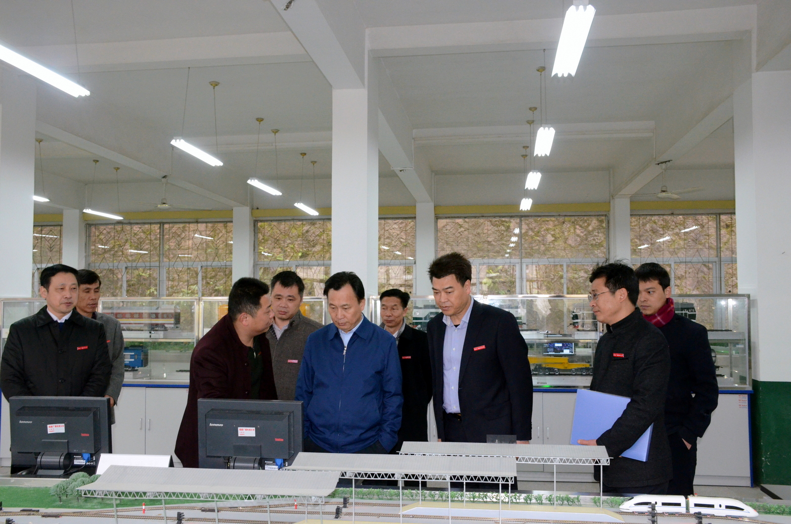 在校党委书记马国防的陪同下,黄红武来到学校多媒体节目制作中心,参观了虚拟演播室、实景演播室、电视节目编辑室,了解学习资源制作过程;走进数字学习体验中心,参与了阅读体验、学习体验和创客空间互动项目;黄红武还走访了铁路综合实训场、铁道运输实训场、铁道供电模拟变电所等铁路专业实训场所,了解了学校办学条件和办学能力。
