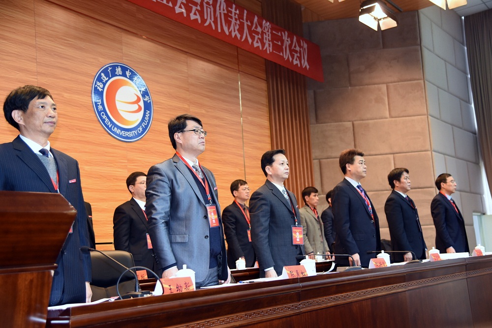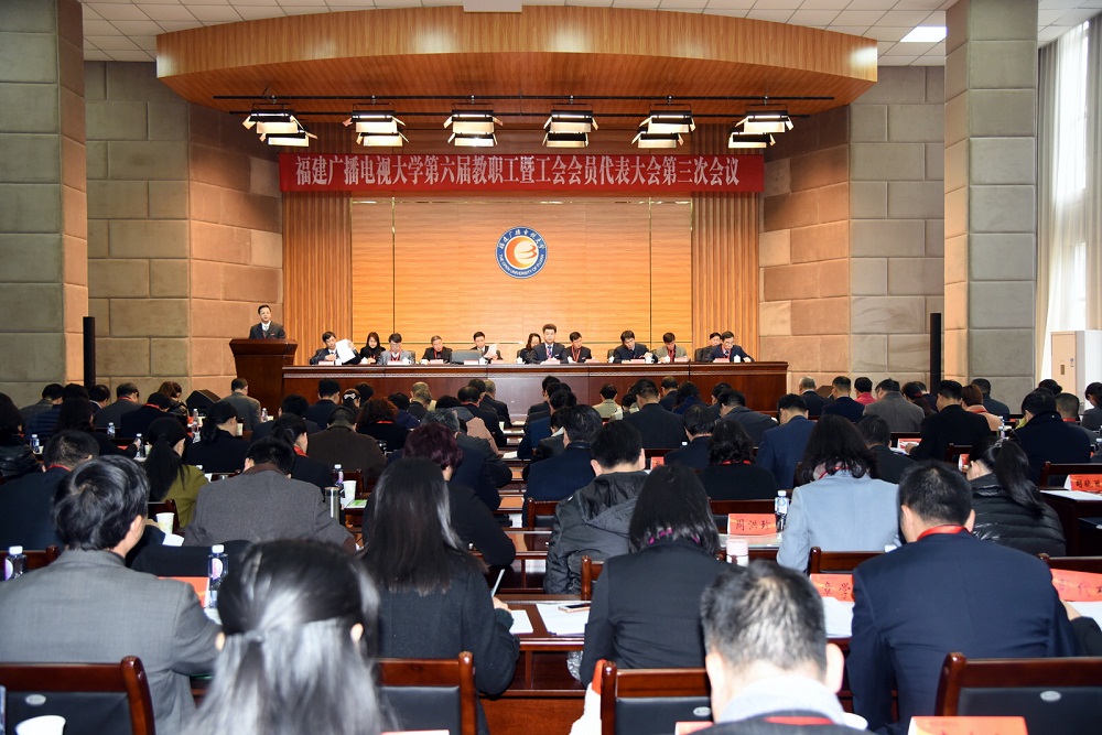 阳春三月,花开正好,草木植成。3月15日上午在十二届全国人大五次会议胜利闭幕的日子,福建电大第六届教职工暨工会会员代表大会第三次会议在桂山校区博厚楼二楼会议厅召开,校领导马国防、陈兴炎、吴国荣、陈展虹、沈光辉、王幼新出席会议,省政协委员、校改革发展咨询委员会主任叶文华参加会议。五个代表团137名正式代表、列席代表、特邀代表齐聚一堂,以高度的使命感和责任感,为推动学校事业进一步发展建言献策。纪委书记王幼新主持会议。