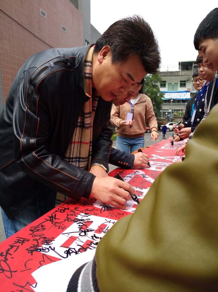 党委书记马国防在横幅上签名