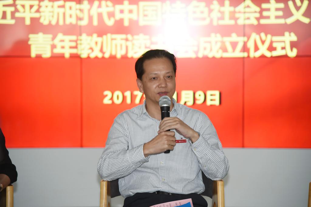 陈兴炎对读书会的成立表示热烈祝贺。他指出,党的十九大是在全面建成小康社会决胜阶段、中国特色社会主义进入新时代的关键时期召开的一次十分重要的大会,在党和国家发展史上具有重大里程碑意义。党的十九大最重大的理论成就,就是把习近平新时代中国特色社会主义思想确立为党必须长期坚持的指导思想,实现了党的指导思想又一次与时俱进,这一重大理论成就具有重大政治意义、理论意义、实践意义。在全校师生深入学习贯彻党的十九大精神的热潮中,青年人成立“习近平新时代中国特色社会主义思想青年教师读书会”,非常及时、十分必要,青年教工踊跃报名参加读书会,体现了我校青年人高涨的学习热情,值得充分肯定。