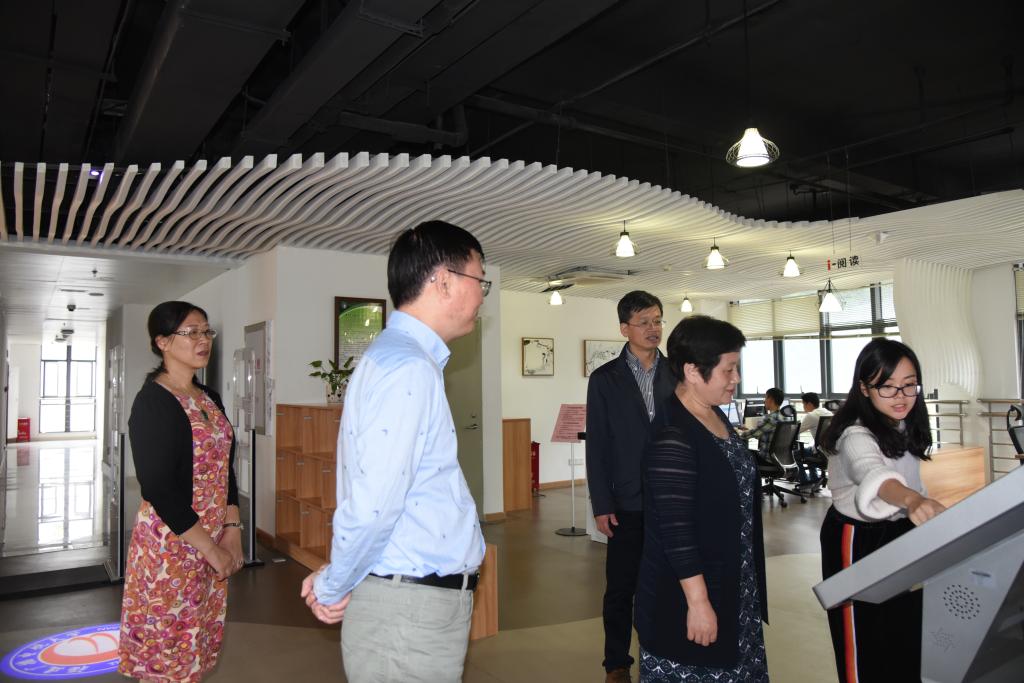 授牌仪式后,张红璇、江发林一行对我校“教工之家”、多媒体资源制作中心、数字学习体验中心等进行实地考察。