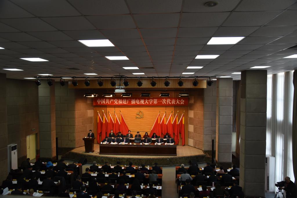 大会在庄严的国歌声中开幕,吴国荣同志主持开幕式。陈兴炎同志代表中共福建广播电视大学委员会作题为《根植八闽大地,办好继续教育,全面建成有特色高水平开放大学》的工作报告。报告全面、客观地回顾和总结了学校第四次党员大会以来的工作成绩和经验,指出了存在的不足,并从指导思想、奋斗目标、发展战略等方面明确了学校未来的工作思路,并强调要坚定不移全面从严治党,努力提升党建工作科学化水平,为学校事业发展提供坚强的组织保障。