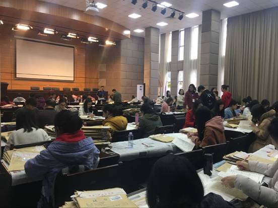 为确保本次期末阅卷顺利有序进行,教学管理中心共聘请评卷教师173人,成立了25个评卷小组,并严格执行相关规定阅卷。评卷小组长研究分析参考答案及评分标准,制定了具体的评卷流程,做到签名规范、评分合理、复核到位,确保试卷批阅质量。评卷期间教学管理中心每天定时举行评卷例会,及时掌握评卷动向,了解评卷进展;中心领导随机巡查评卷场地,听取评卷小组长汇报,及时解决发现的问题。