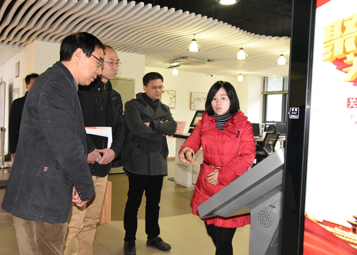 1月26日,由省发改委、厦门大学、福建省经济信息中心、福建省电子集团等单位人员组成的专家组一行4人在省发改委数字福建领导小组办公室郑彦翎的带领下,莅临我校检查评估数字福建终身教育大数据研究所建设情况。吴国荣校长会见了专家组一行,副校长沈光辉、学校有关部门及福建省华渔教育科技有限公司相关人员参加了调研汇报会。