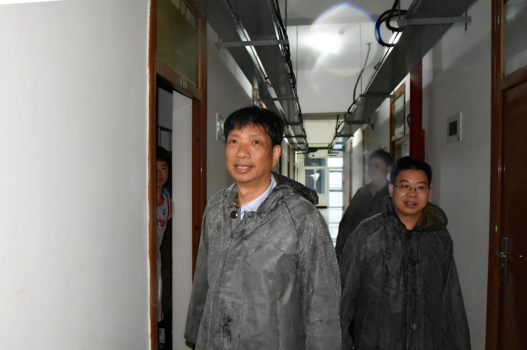 为做好今年第8号台风 “玛莉亚”防御工作,7月11日上午,校纪委书记王幼新受校党委书记陈兴炎、校长吴国荣委托冒雨先后深入2#学生公寓建筑工地、运动场、学生宿舍等校园防台风防汛重点部位,仔细检查应对防抗台风工作情况。