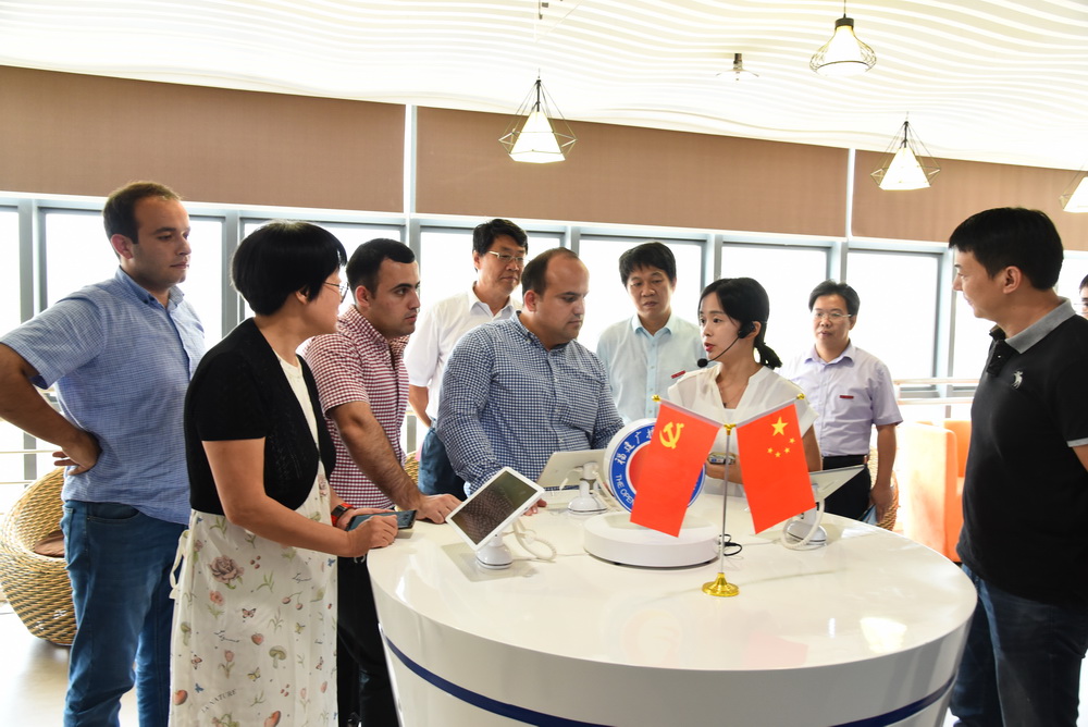 塔吉克斯坦国资委副主席秘书Firuz Abdugafor、翻译巴赫,教育部国际交流协会副会长、内蒙古国际学院院长王朝阳、福建省网龙普天教育科技有限公司有关人员参加交流,副校长陈展虹、党政办、教务处负责人陪同交流。