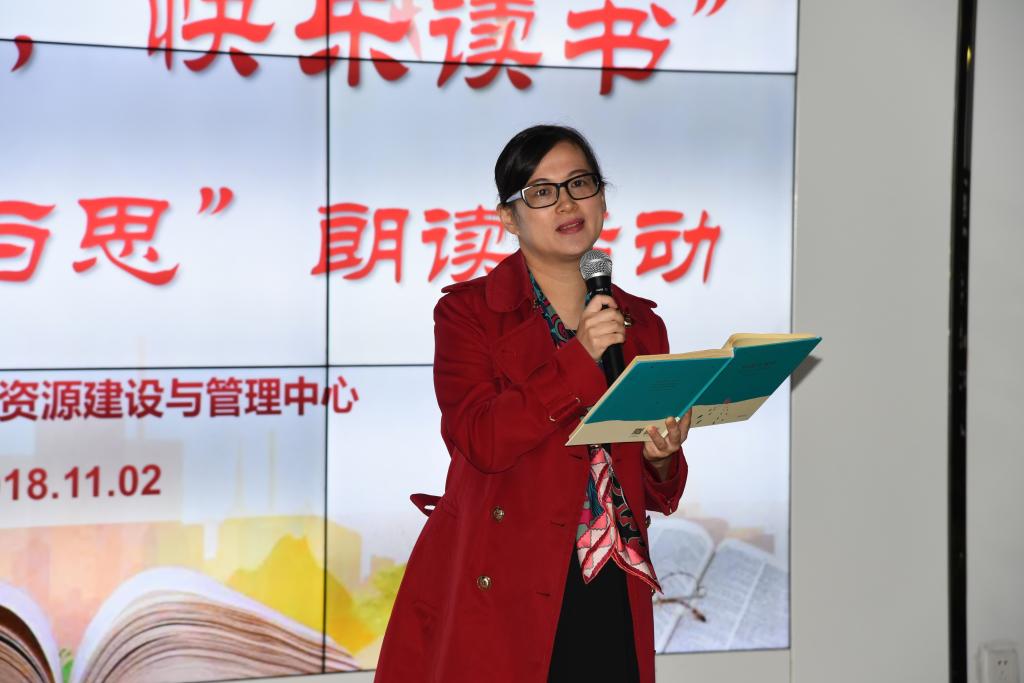 为深入学习贯彻习近平新时代中国特色社会主义思想,庆祝改革开放40周年暨邓小平同志批示创办电大40周年,11月2日下午,由工会、资源建设与管理中心主办的“书香校园,快乐读书”教职工“读与思”朗读活动在桂山校区数字学习体验中心举行。校领导陈兴炎、马成斌、王幼新同现场近70名观众一起参加了朗读活动。