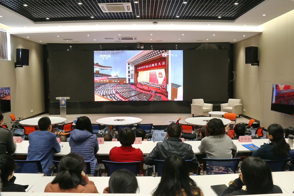 12月18日上午10时,庆祝改革开放40周年大会在人民大会堂隆重举行,全校师生员工怀着激动的心情第一时间收听收看了中央电视台庆祝改革开放40周年大会直播,认真聆听习近平总书记在大会上的重要讲话。