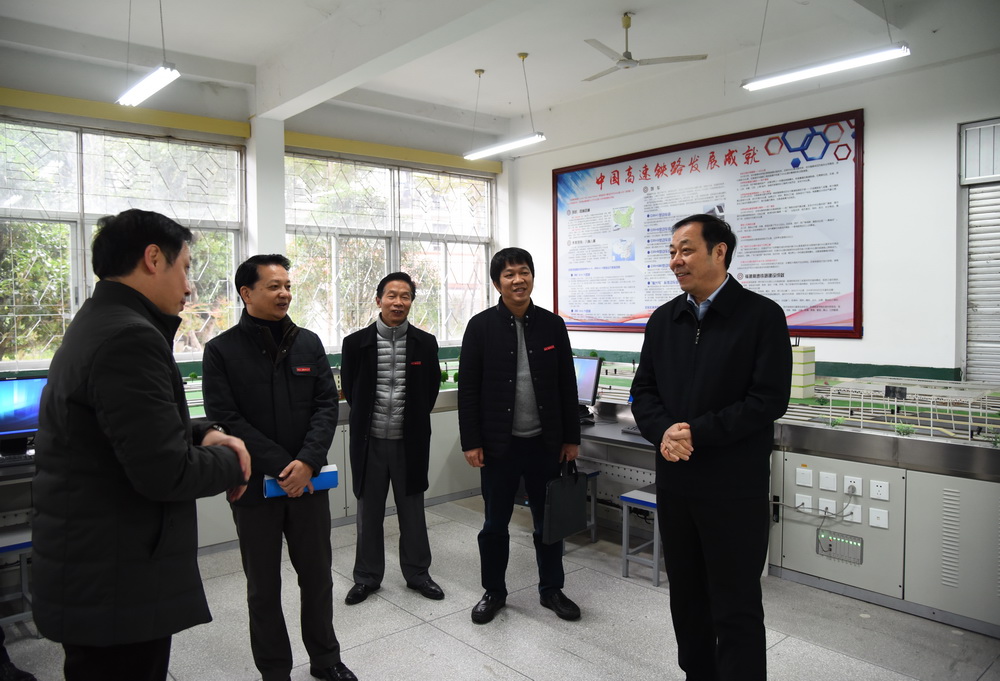 杨贤金一行先后深入学校高铁实训沙盘、高铁模拟牵引变电所、数字学习体验中心、节目录制中心和编辑中心等,详细了解学校人才培养、实训基地建设和课程资源建设等方面的情况,并向师生送去新年问候。