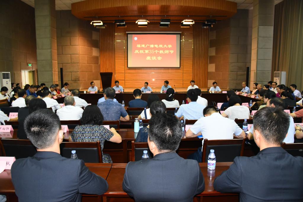 为庆祝教师节,弘扬优良师德师风,9月10日上午,学校在博厚楼会议厅召开庆祝第35个教师节座谈会。校领导陈兴炎、吴国荣、马成斌、陈展虹、沈光辉、王幼新出席座谈会。2019年获得任教满30年荣誉证书的教师、受到表彰的先进集体和个人、新引进台湾全职教师、青年教师代表、新入职教师以及各部门、学院代表、学生代表等八十余人参加座谈会。党委副书记马成斌主持座谈会。