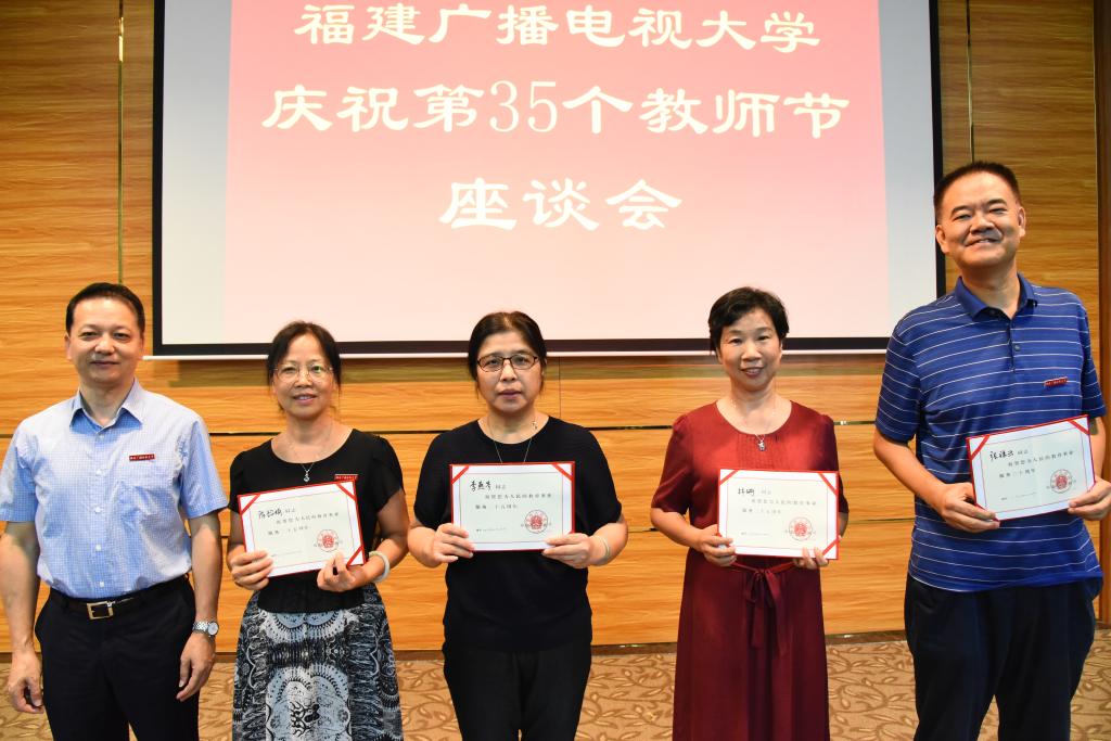 教师们进行了座谈和交流。“从教满30年教师”李燕芳,“国家开放大学优秀教师”汪继红,“全省电大系统先进集体”资产与后勤管理处处长林永周,“全省电大系统优秀教师”陈忠琼,“国家开放大学优秀青年教师培养对象”曾春妹,新教师王舒云等分享了各自的经历、体会和感想。