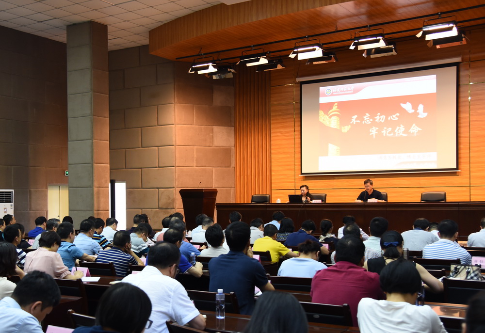 为扎实推进学校“不忘初心、牢记使命”主题教育,增强全校各基层党组织开展主题教育的政治自觉,凝聚全校党员干部思想共识,按照学校关于开展主题教育支部书记轮训工作安排,9月19日下午,学校举办“不忘初心、牢记使命”主题教育专题讲座,邀请福建师范大学教授、博士生导师傅慧芳主讲。校领导班子成员、全体处级干部,各党总支、支部书记以及科级党员干部参加学习,校党委副书记马成斌主持。