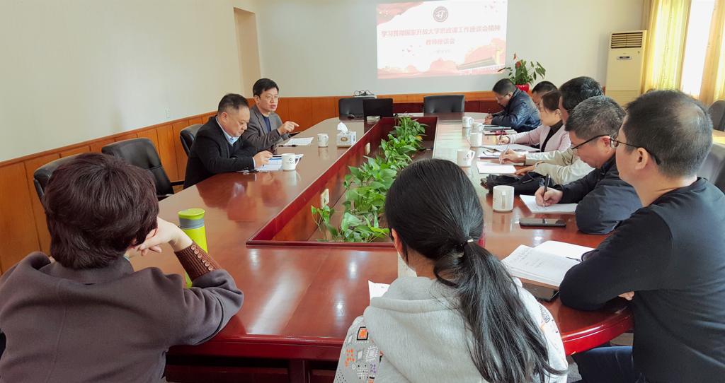 会议传达了国家开放大学思政理论课工作座谈会暨网络教学核心团队会议精神。思政教研室主任汪继红总结了本学期学校思政理论课教学情况,并提出2020年思政理论课教学工作计划。与会老师就贯彻落实国家开放大学会议精神展开热烈的讨论,大家表示要积极履职、协同配合,提升思政理论课教学水平和信息化技术运用能力,持续探索成人学生易于接受的教学方法和活动方式,开展与时俱进的理论和实践教学,增强思政理论课的亲和力、吸引力和感染力,当好成人学生思政教育的领路人。宣传部、教务处负责人对思政理论课教学工作提出意见和建议。