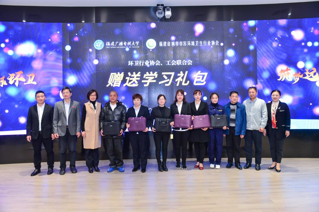 环卫行业协会、工会联合会为学员代表赠送“学习礼包”,希望学历和技能提升专班学员们学有所获、学有所成。