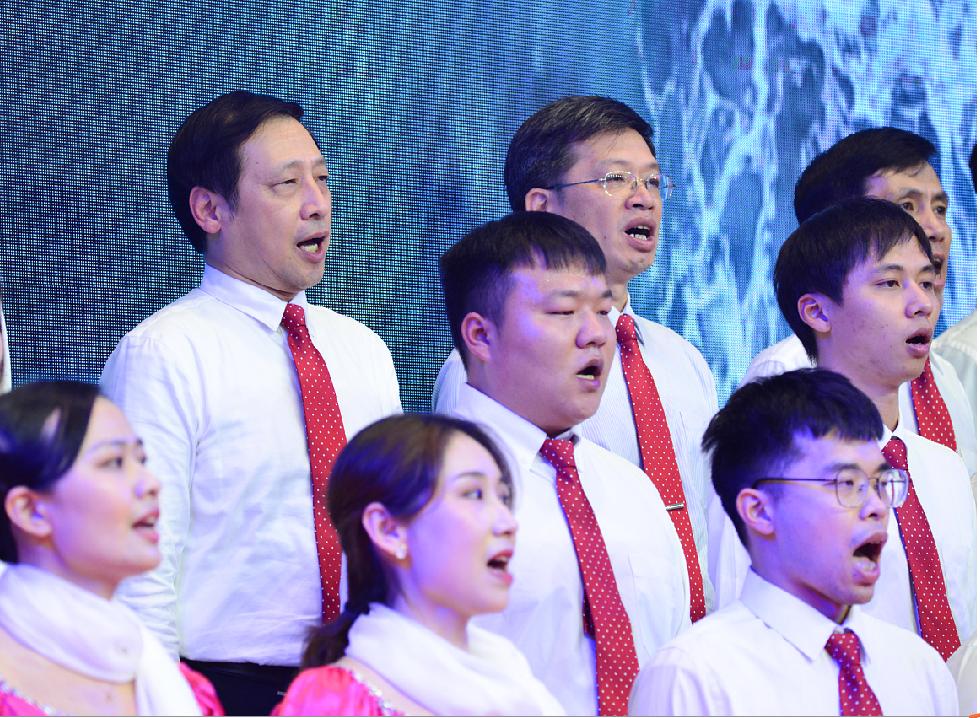 弦歌不辍、薪火传扬……伴随着催人奋进、情深意长的校歌,歌咏比赛徐徐拉开了序幕。10支参赛队伍带来了《福建开放大学校歌》《我和我的祖国》《国家》《走向复兴》《我们都是追梦人》《您花开的样子》等激情洋溢的歌曲,并在演唱过程中融入诗朗诵、舞蹈等多种表演形式。每一位演唱者都满怀豪情、慷慨激昂,用歌声表达对党和祖国的无限热爱和办好开放大学的坚定决心,点燃了现场每位师生心中的火热激情。校领导也作为队员参加了比赛。