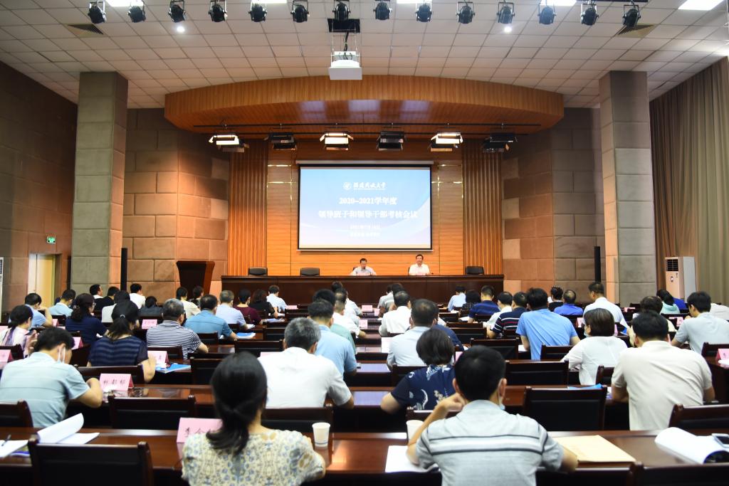 按照省委组织部关于做好高校领导班子和领导干部年度考核工作的统一部署和要求,7月14日上午,我校在博厚楼会议厅召开2020-2021学年领导班子和领导干部考核会议,并结合开展校党委领导班子成员述责述廉和选人用人工作“一报告两评议”。省委组织部干部六处处长、一级调研员李少群一行莅校开展考核工作。校领导,纪委委员,中层干部,民主党派和群众团体负责人等参加会议。会议由校党委书记陈兴炎主持。