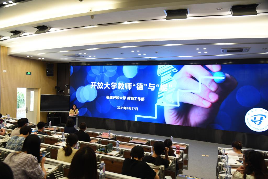 李正光简要回顾了福建开放大学四十多年的发展历史,讲述了从广播电视大学走向开放大学的光辉历程,并分享了自己在学校27年来的工作经历和经验体会,结合学校改革发展,从“守初心、担使命”、“崇师德、有情怀”、“勤学习、有作为”三个方面向新教师提出希望和要求,勉励新教师树立系统思维,恪守师德,勤奋学习,善于实践,做一名有理想信念、有道德情操、有扎实学识、有仁爱之心的“四有”好老师。