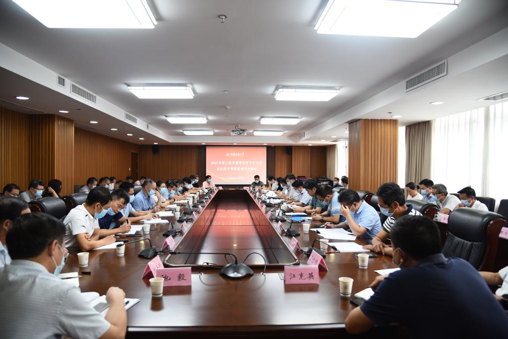 10月14日下午,学校召开2021年第11次党委理论学习中心组与处级干部联组读书交流会,以“认真学习四史,赓续红色血脉,奋力推进全省开放大学建设新局面”为主题,深入学习习近平总书记在辛亥革命110周年大会上重要讲话精神和《毫不动摇坚持和加强党的全面领导》《用好红色资源、赓续红色血脉、努力创造无愧于历史和人民的新业绩》等重要文章,学习《中国共产党的历史使命和行动价值》《中国共产党简史》《社会主义发展史》《改革开放史》《中华人民共和国简史》等“新四史”读本,以及人民日报论中国共产党人精神谱系的系列文章。党委书记陈兴炎主持会议,校领导吴国荣、马成斌、沈光辉、王幼新及全校处级干部参加会议。