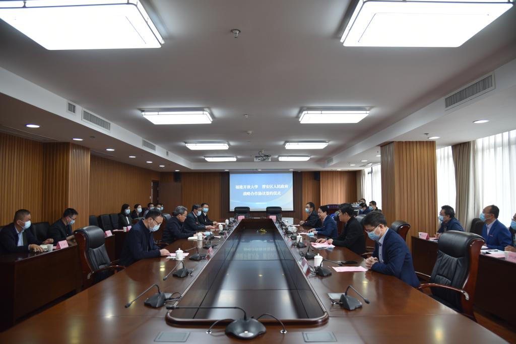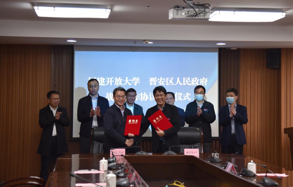 在双方领导的共同见证下,吴国荣、董敬太分别代表福建开放大学和晋安区人民政府签署了战略合作协议。