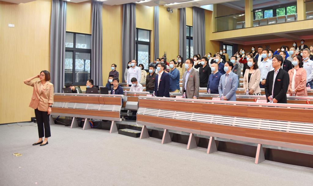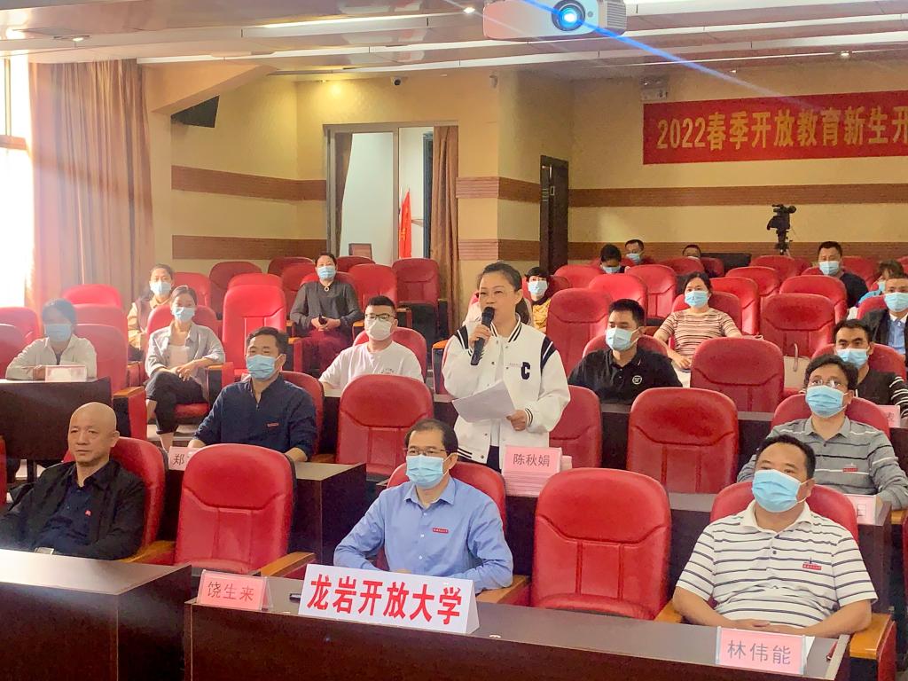 开学典礼在嘹亮雄壮的国歌声中开始。校领导对2021年度福建开放大学优秀学生干部进行了表彰,并为获奖代表颁发了荣誉证书。理工学院机械设计制造及其自动化本科专业章华加同学代表新生在主会场发言,龙岩开放大学小学教育专科专业陈秋娟同学代表老生在龙岩分会场发言,他们分别从不同角度分享了自己参加福建开放大学学习的认识和收获,表达了珍惜机会、学好知识的决心。公共管理学院韩瑞峰代表教师发言,向全体新同学提出学习建议,并代表全体教师作出承诺和表态。校领导为新生代表佩带了校徽。在文经学院班主任刘洪的带领下,新生进行了入学宣誓。全体参加人员合唱了《福建开放大学校歌》。