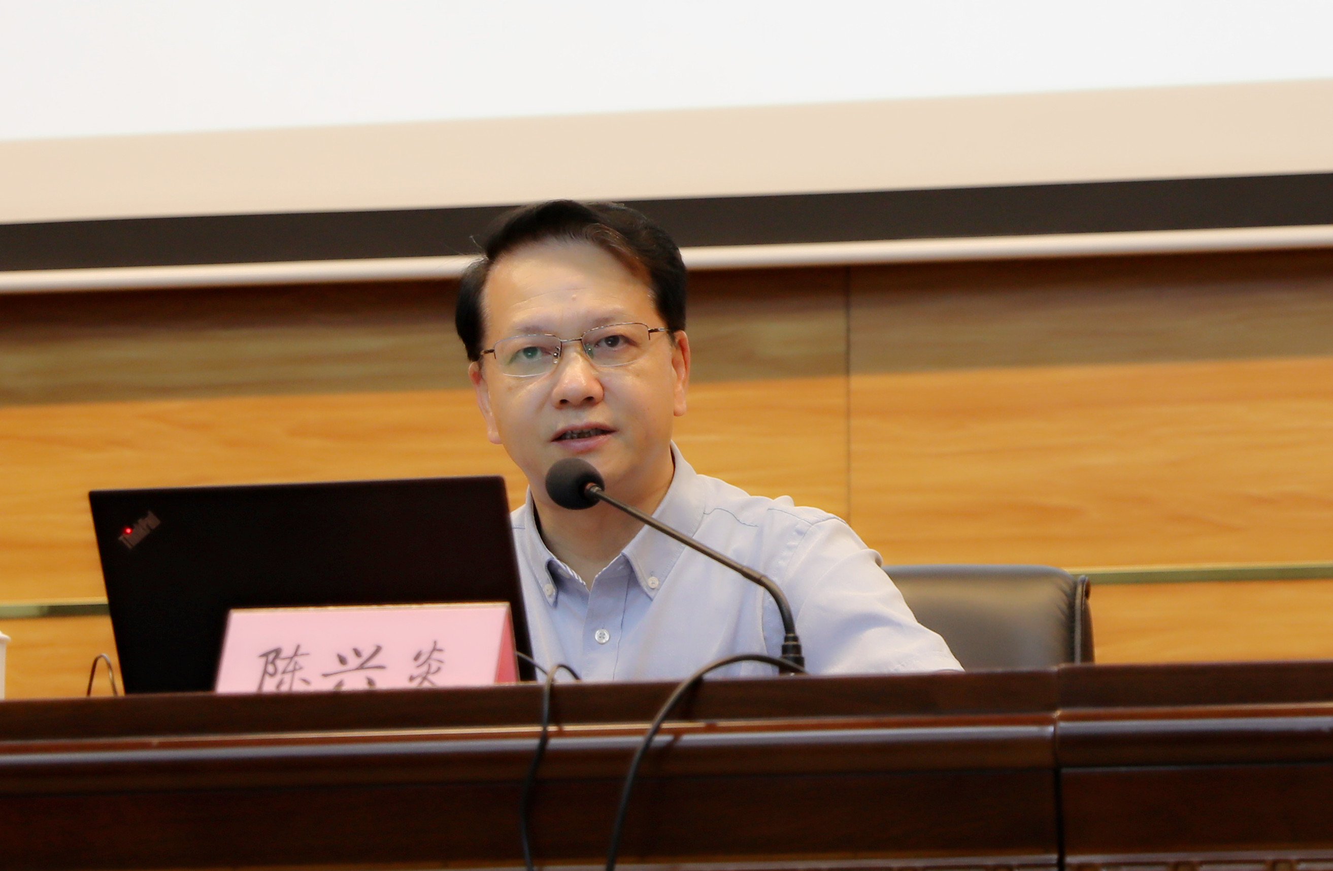按照中央和省委学习贯彻习近平新时代中国特色社会主义思想主题教育部署要求,5月25日下午,党委书记陈兴炎在桂山校区博厚楼二楼会议厅带头讲学习贯彻习近平新时代中国特色社会主义思想主题教育专题党课。全体校领导、处级干部、各基层党组织书记、主题教育领导小组办公室全体成员参会。省委第13巡回指导组组长李宝银、成员陈若彦莅会指导。