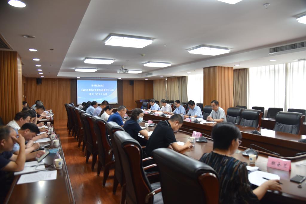 6月8日下午,学校召开2023年第七次党委理论学习中心组学习(扩大)会议暨学习贯彻习近平新时代中国特色社会主义思想主题教育读书班专题学习研讨会,以“坚定信心久久为功 实干担当促进发展”为主题,学习习近平总书记在中共中央政治局第五次集体学习时的重要讲话和给中国农业大学科技小院学生重要回信精神,以及《习近平新时代中国特色社会主义思想专题摘编》第六部分。会议设两个会场分组开展学习研讨,主会场由党委书记陈兴炎主持,分会场由校党委委员、纪委书记王幼新主持。校领导吴国荣、马成斌、沈光辉、李正光及全体处级干部参加会议。