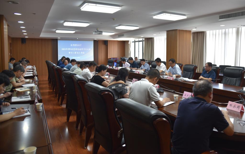 7月12日上午,校党委书记陈兴炎主持召开2023年第九次党委理论学习中心组学习(扩大)会议,以“坚守马克思主义魂脉,传承中华优秀传统文化根脉,不断深化对党的理论创新的规律性认识”为主题,学习习近平总书记在中共中央政治局第六次集体学习时的重要讲话精神、对党的建设和组织工作作出重要指示精神、在文化传承发展座谈会上的重要讲话精神等。校领导吴国荣、马成斌、沈光辉、王幼新、吴建铭及学校正处级干部参加会议。