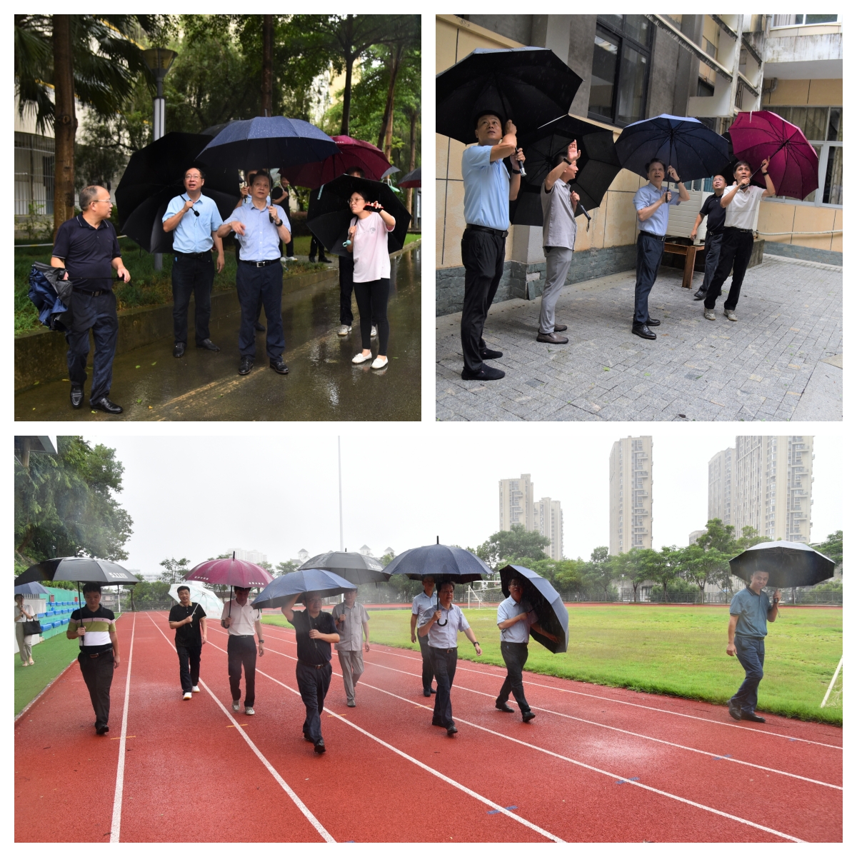 校领导一行先后察看了校园周边环境、后山操场、学生公寓、食堂、实训楼等重点区域,认真听取了责任部门的现场汇报,针对用电安全、食品安全、强降雨带来的滑坡隐患、以及校园周边拆迁安全防护等问题,提出了具体的整改意见和整改时限。