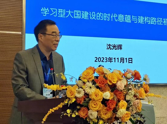 沈光辉在圆桌论坛上作《学习型大国建设的时代意蕴与路径建构初探》专题报告,他在主题演讲中阐释了中国建设学习型大国命题的概念内涵、中国特色、时代特征、文化底蕴、实现路径以及在中国式现代化进程中的作用等内容,演讲兼具理论深度与实践意义,受到与会的专家学者及国际友人的欢迎与关注。