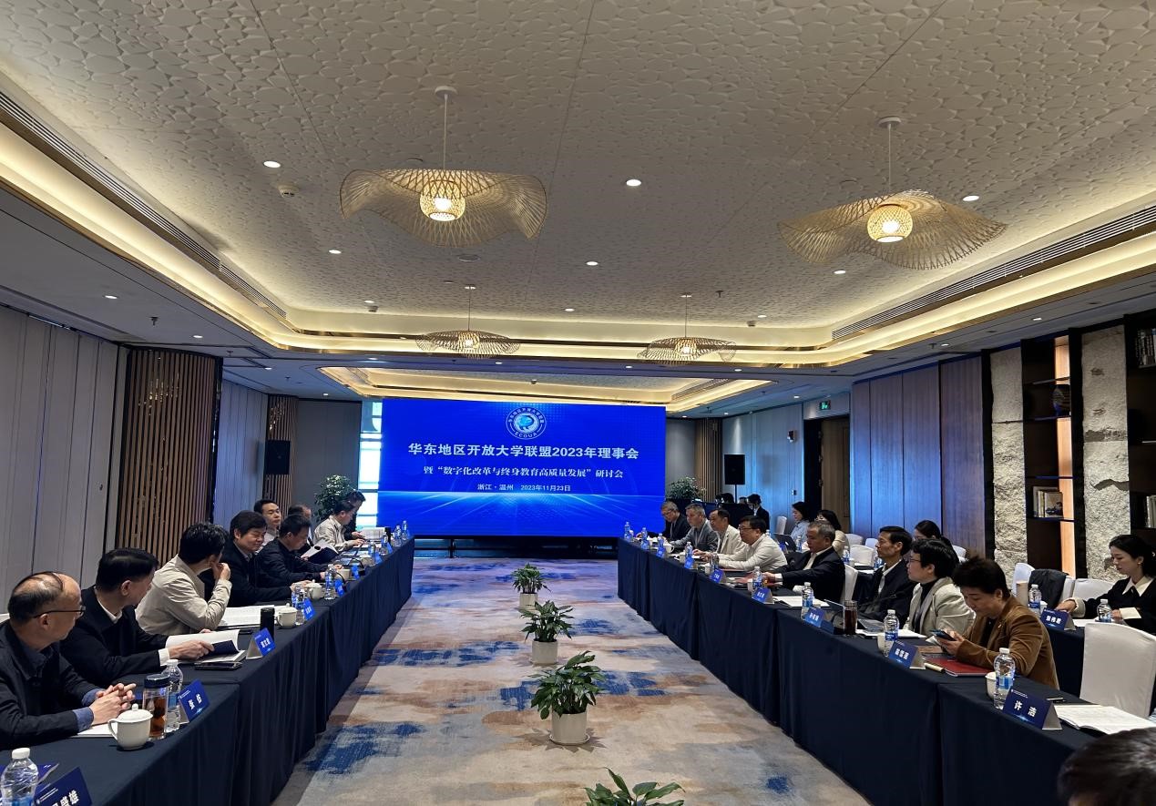 11月22日-24日,由浙江开放大学承办的华东地区开放大学联盟理事会2023年会议在浙江温州召开。我校党委副书记、校长吴国荣和华东地区开大主要负责人及相关部门负责人参加会议。