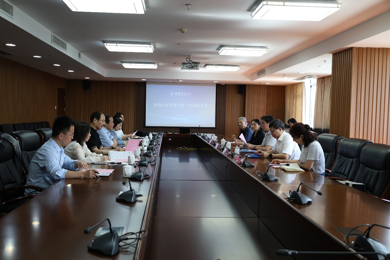 双方就社区教育体系建设、老年大学建设以及终身教育工作等方面进行了深入交流。山东开放大学一行还参观了左海校区书法教室、“牢记嘱托 感恩奋进”主题馆等。