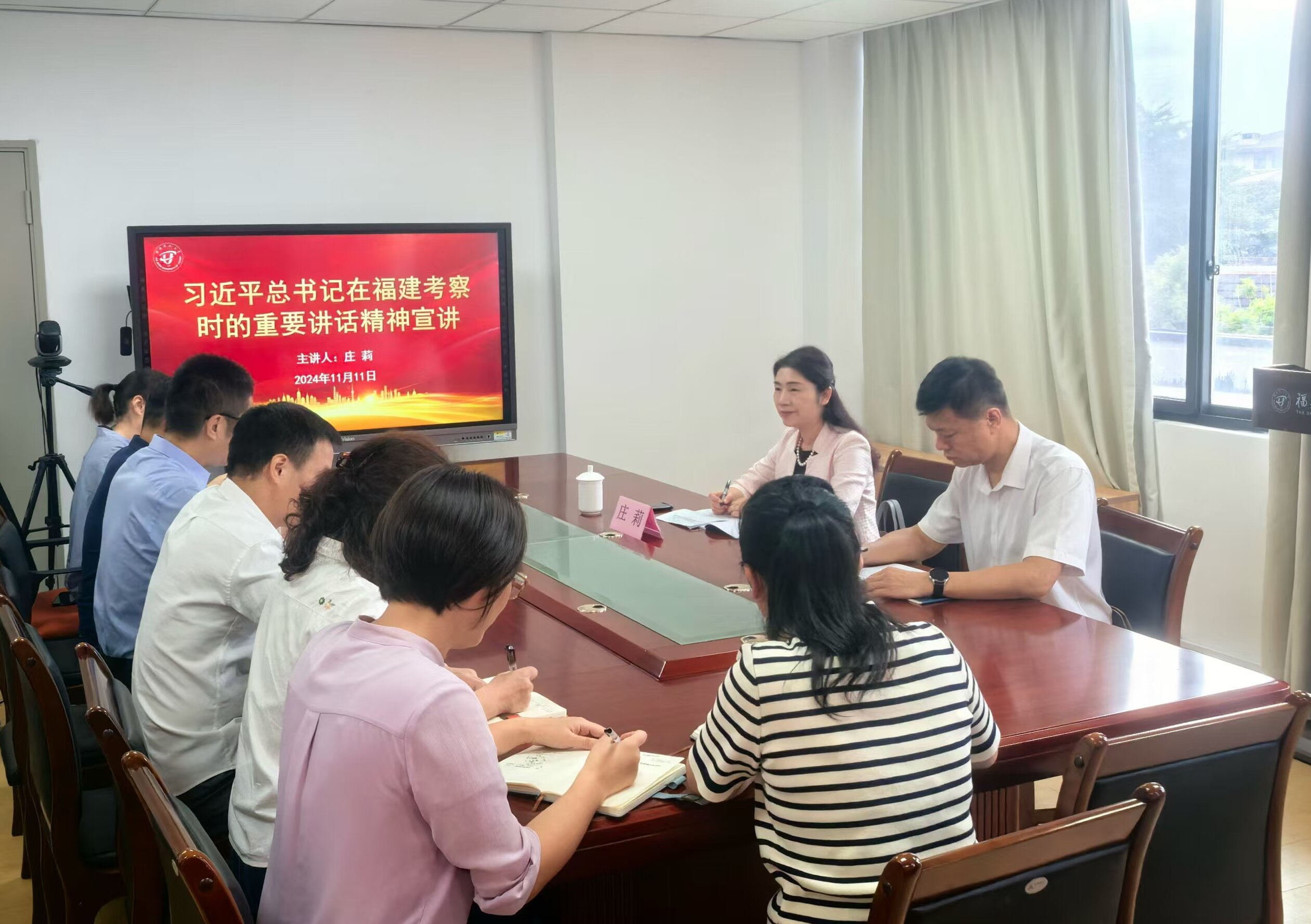 校领导强调,要把学习贯彻习近平总书记在福建考察时的重要讲话精神,与学习贯彻党的二十届三中全会、全国教育大会精神和习近平总书记关于教育的重要论述等结合起来,一体学习、一体思考、一体落实,深刻把握学校改革发展面临的新形势新任务,以实际行动坚定拥护“两个确立”,坚决做到“两个维护”。要对标落实“在推动科技创新和产业创新深度融合上闯出新路”“在全面深化改革、扩大高水平开放上奋勇争先”“在推动区域协调发展和城乡融合发展上作出示范”“在提升文化影响力、展示福建新形象上久久为功”重要要求,坚持立德树人根本任务,持续推进学校党建领航、服务跃升、内涵提质、能力强基、治理增效五大工程,进一步彰显办学特色和优势,全面提升人才培养质量,为新时代新福建建设作出新的更大贡献。