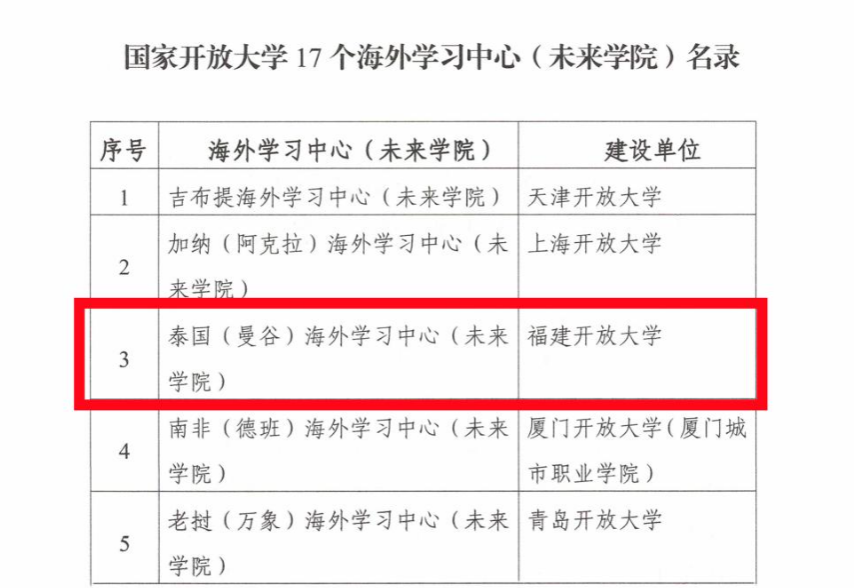 东盟-曼谷学习中心入选国家开放大学海外学习中心(未来学院)名录