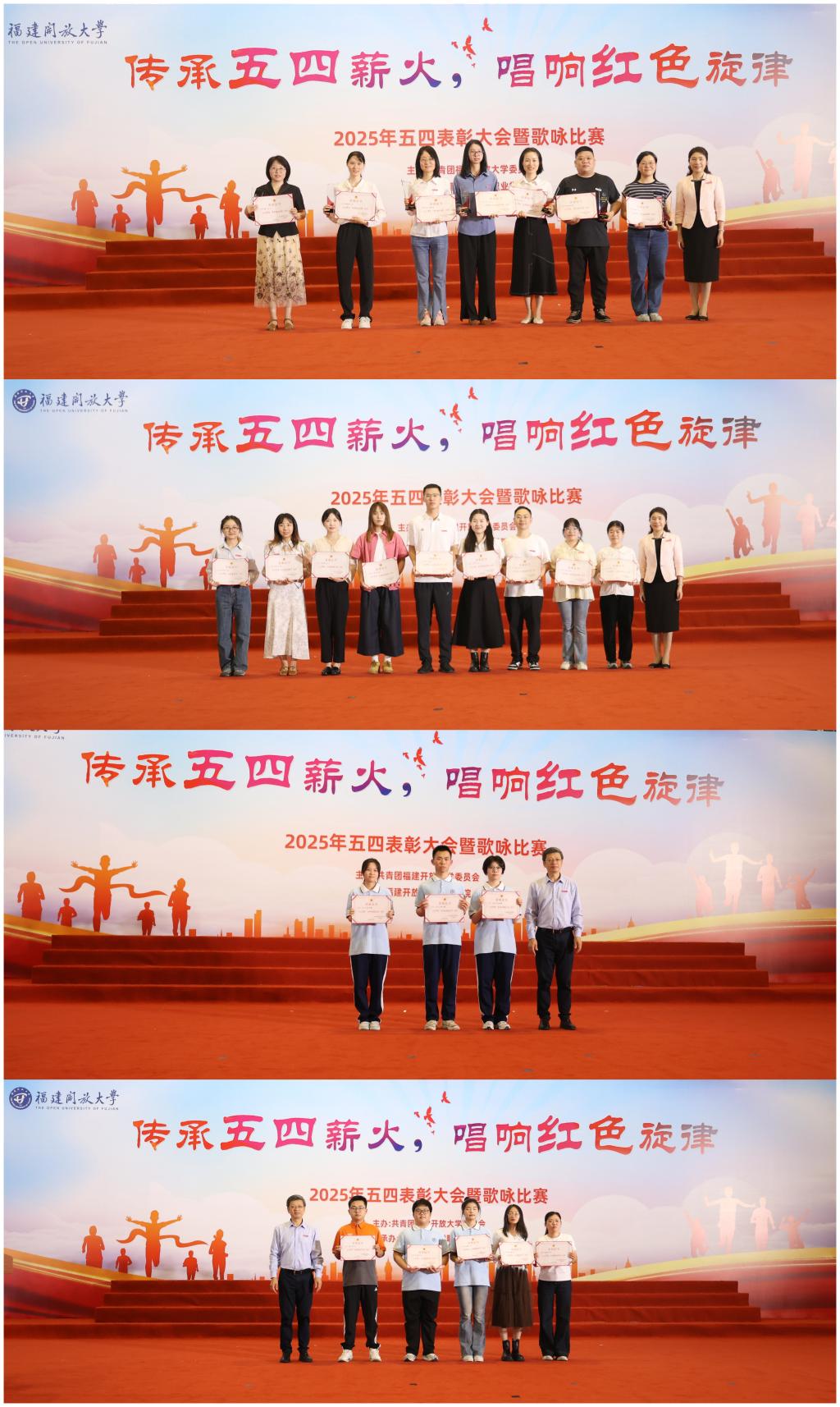 表彰先进,荣耀时刻。活动伊始,国歌奏响,全场肃立,齐唱国歌。激昂旋律中,爱国情怀与青春热血交融,为比赛注入庄重而奋进的精神力量。学生工作处处长张以华通报了我校学子陈晓冬、江兴达荣获中国新时代青年先锋奖,并宣读了2024年度学校共青团先进集体和先进个人的表彰决定。庄莉、马成斌为获得表彰的先进集体和个人颁发证书,激励全校青年学子立足开放教育特色,在终身学习的赛道上奋勇争先。