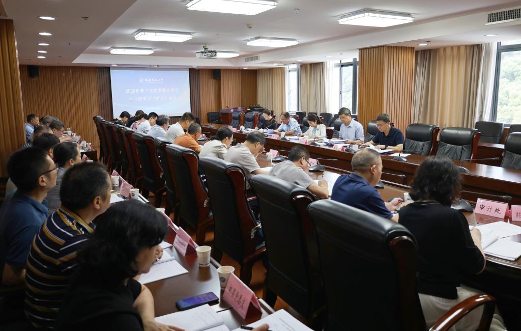 6月13日,学校党委理论学习中心组学习扩大会在桂山校区举行。会议聚焦“大力纠治违规吃喝顽疾,筑牢思想防线,以作风建设新成效促进学校高质量发展”主题,深入贯彻习近平总书记关于加强党的作风建设的重要论述和中央八项规定及其实施细则精神,认真学习领会中央和省委相关部署要求,以案为鉴,始终把纪律和规矩挺在前面,以集中整治违规吃喝的新成效推动学习教育走深走实。校党委委员及2名处级干部作交流发言。各部门、学院主要负责同志列席会议。