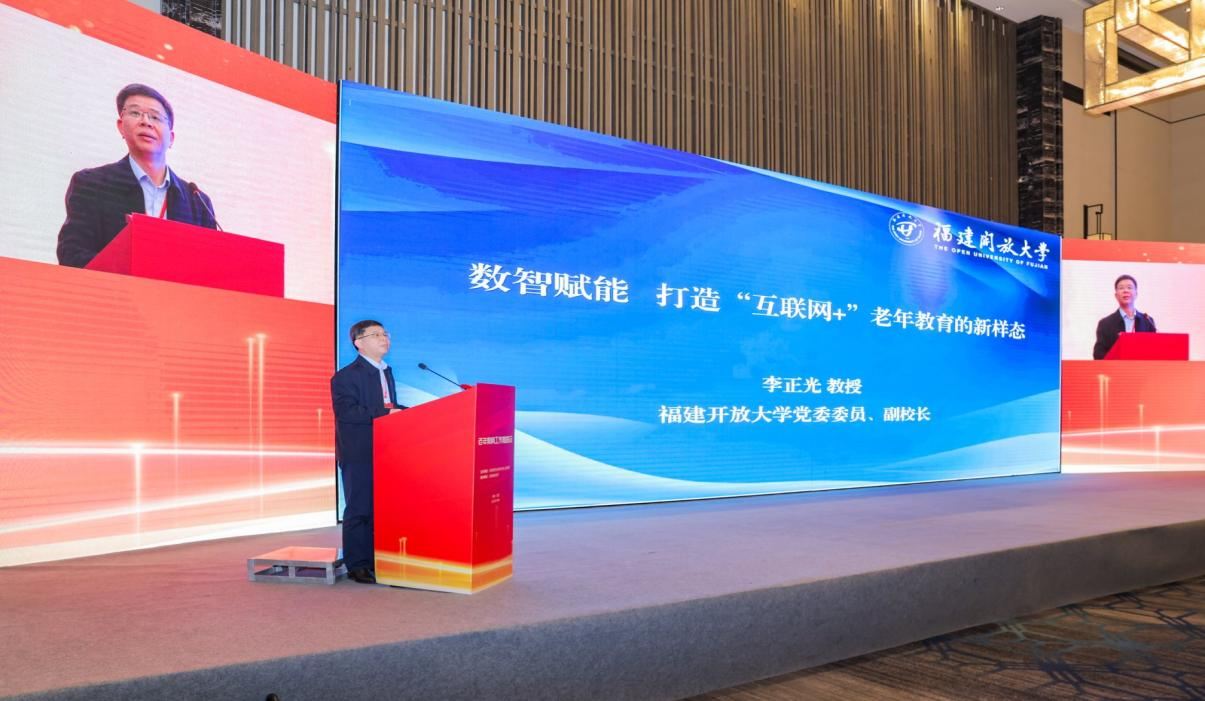会上,校党委委员、副校长李正光教授以《数智赋能,打造“互联网+“老年教育的新样态》为题,围绕“开放大学服务学习型社会建设”,从三个方面系统介绍了我校在数字赋能老年教育领域的实践路径与工作成效。一是学校通过打造老年教育的“一网一舱一平台”,构建多平台、多场域融合互通的智慧教育新场景,实施体系化办学,推动数字化学习服务网络覆盖城乡;二是强化老年教育资源的开发供给,统筹推进老年教育的资源共享、数据互通和服务融合,提升基层可持续服务能力;三是学校进一步加强老年教育的办学管理、教学实施、师资培养和教学评价等措施,开展老年教育大数据分析和研究,以数字化手段提升终身学习效能,推动数字应用践行见效。通过开展“百师千课进万家”、“智慧助老”等形式多样的老年教育活动,推动“智慧助老”进社区、进农村、进家庭等形式,提升老年学员获得感与幸福感。