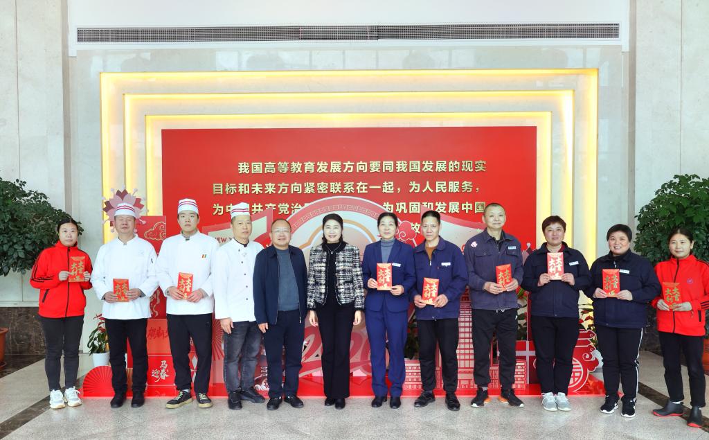 校党委书记庄莉代表省委教育工委慰问学校一线困难党员教工。庄莉还慰问了学校物业、食堂、保卫等工作人员,向他们送去了节日的问候,并发放了慰问金。
