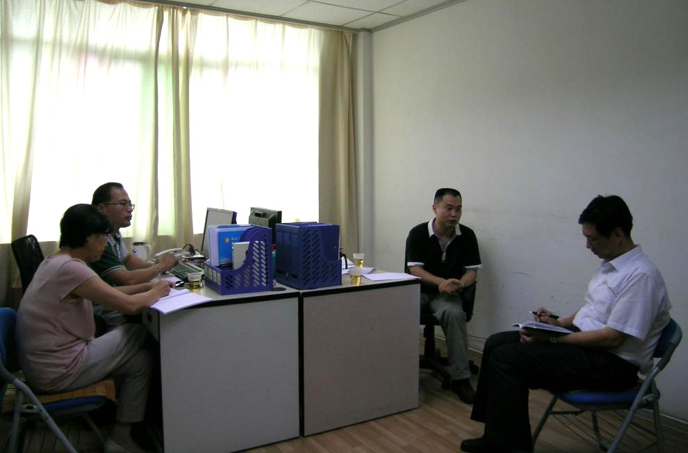 纪委书记王幼新(中间)与考试中心相关人员交流座谈