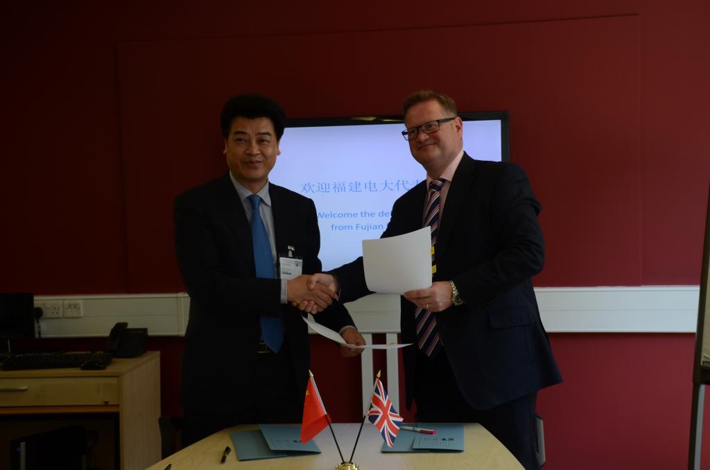 党委书记马国防与英国开放大学副校长Steve Hill交换合作协议
