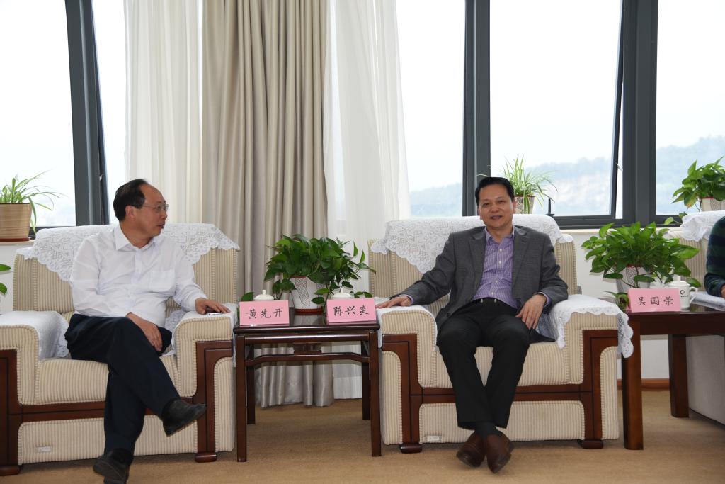 校长陈兴炎(右)与北京开大校长黄先开(左)