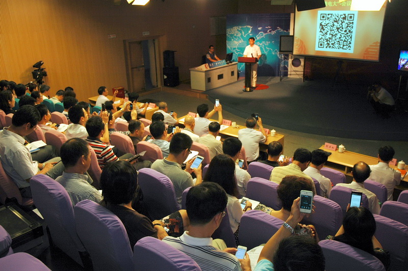 与会人员用手机扫描“微电大”微信二维码