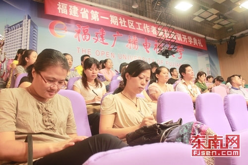 东南网9月17日讯(本网记者 周艾连)第一期福建省社区工作者岗位培训今日在福建广播电视大学开班,全省八地市(除厦门外)4627名社区工作者通过课堂和远程视频一起上了第一堂课。今后三年里,省内社区工作者将分六期陆续参加该培训,提升服务能力和综合素质。